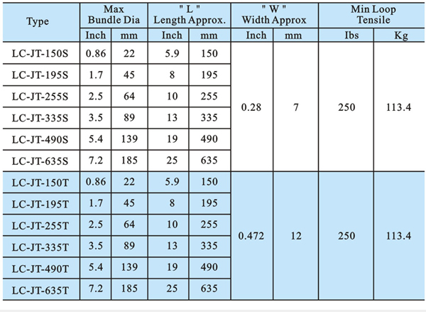 二、梯形不銹鋼扎帶技術(shù)參數(shù):